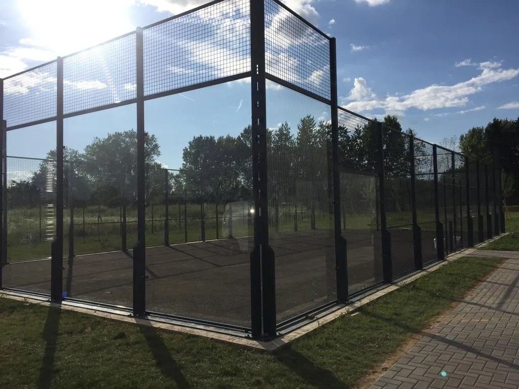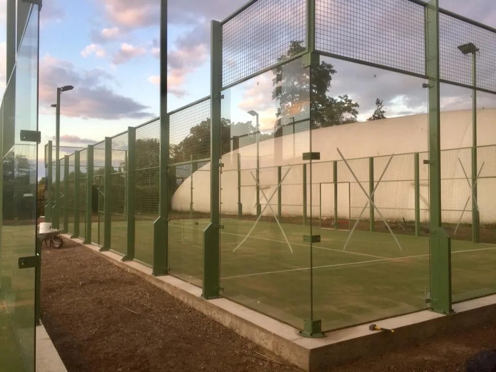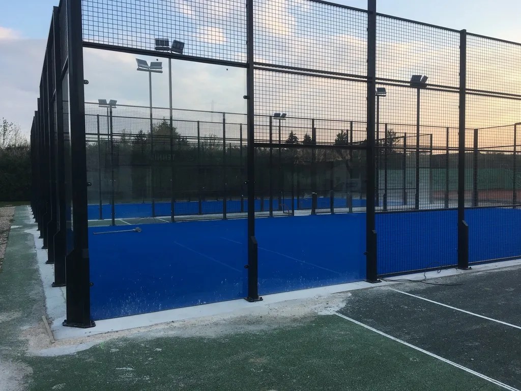 - Installation des structures : Pose des vitrages et structures métalliques spécifiques au padel.