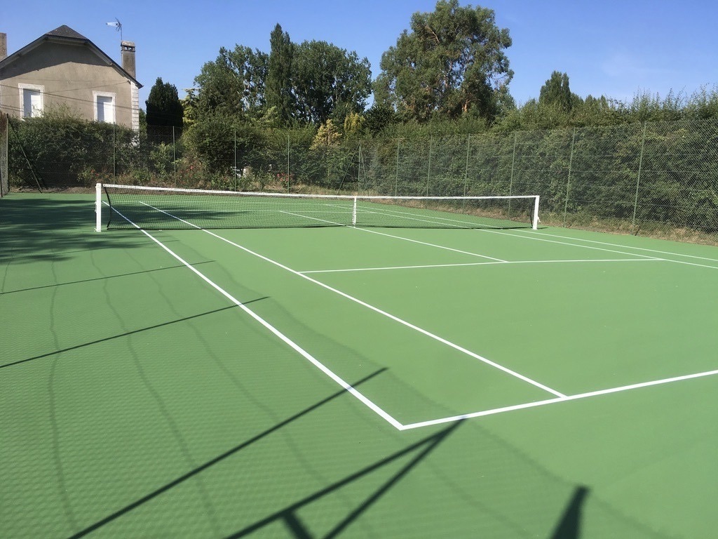 ADN-SOL, entreprise certifiée Qualisport, est votre expert pour la construction de courts de tennis à Nantes. Nous proposons des solutions personnalisées pour des terrains en béton poreux, résine, quick tennis, terre battue synthétique, moquette tennis, et gazon synthétique. En plus de la construction de terrains de tennis à Nantes, nous offrons des services de rénovation de terrains de tennis, en utilisant des matériaux de qualité pour redonner vie à vos installations. Nous assurons également l’aménagement des équipements de tennis et l’installation et rénovation des grillages et clôtures de tennis, garantissant ainsi sécurité et performance. Pour préserver la durabilité de vos terrains, nous proposons des services d’entretien, nettoyage, démoussage et traitement anti-mousse. Faites appel à notre expertise pour la création, la rénovation, l’entretien et l’aménagement de vos terrains de tennis à Nantes, que ce soit en béton poreux, résine, ou gazon synthétique.
